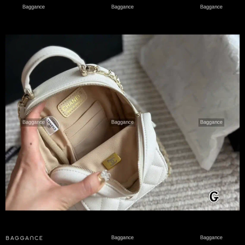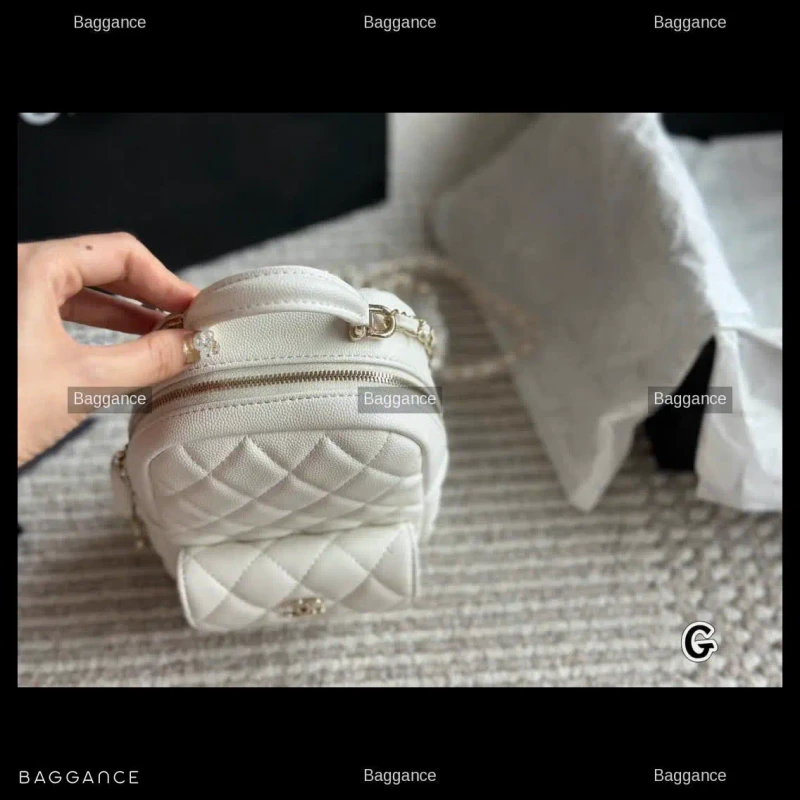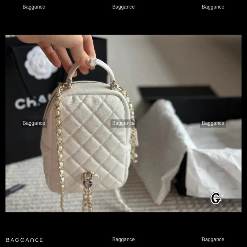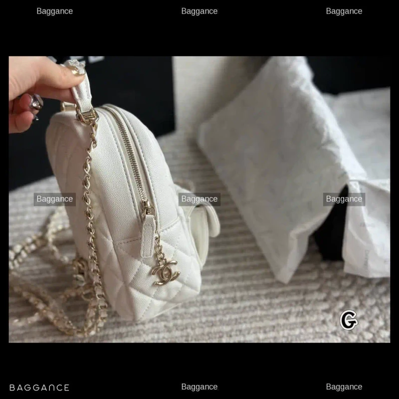 The Chanel 24C New Mini Backpack is a standout piece from the latest collection, blending luxury with effortless utility. This compact backpack is crafted from premium grained calfskin (Lichi leather), offering a sophisticated texture that is both soft to the touch and highly durable against daily wear.