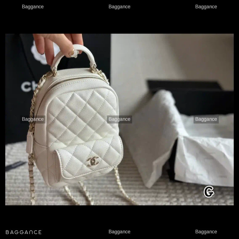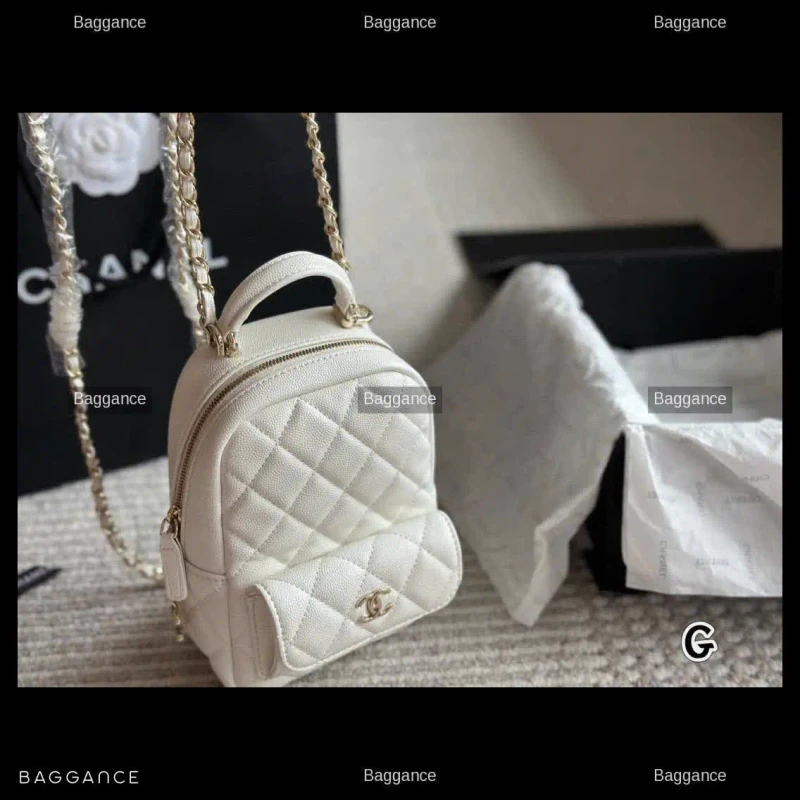 Chanel 24C Small White Grained Calfskin Backpack 18cm Fullbox - EVCHFW-044