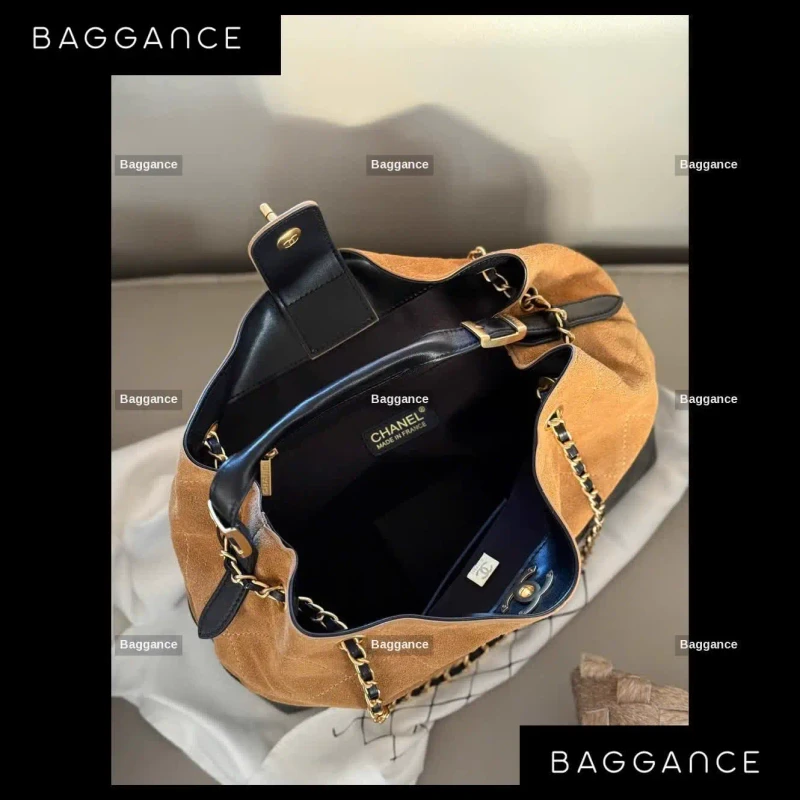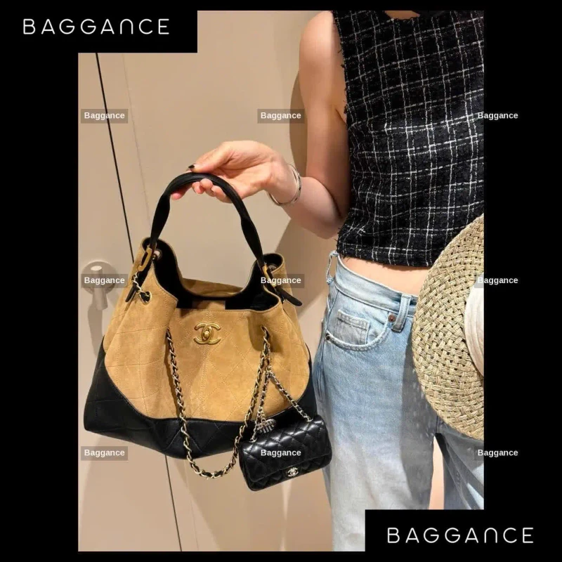 As part of the prestigious 25A lineup, this tote incorporates the signature gold-tone hardware and the legendary leather-interlaced chain straps. These straps are engineered for comfort, allowing the bag to sit perfectly on the shoulder. The front is adorned with the discreet yet powerful Chanel branding, ensuring that the Haute Couture Suede Tote remains a timeless staple in your wardrobe for years to come.