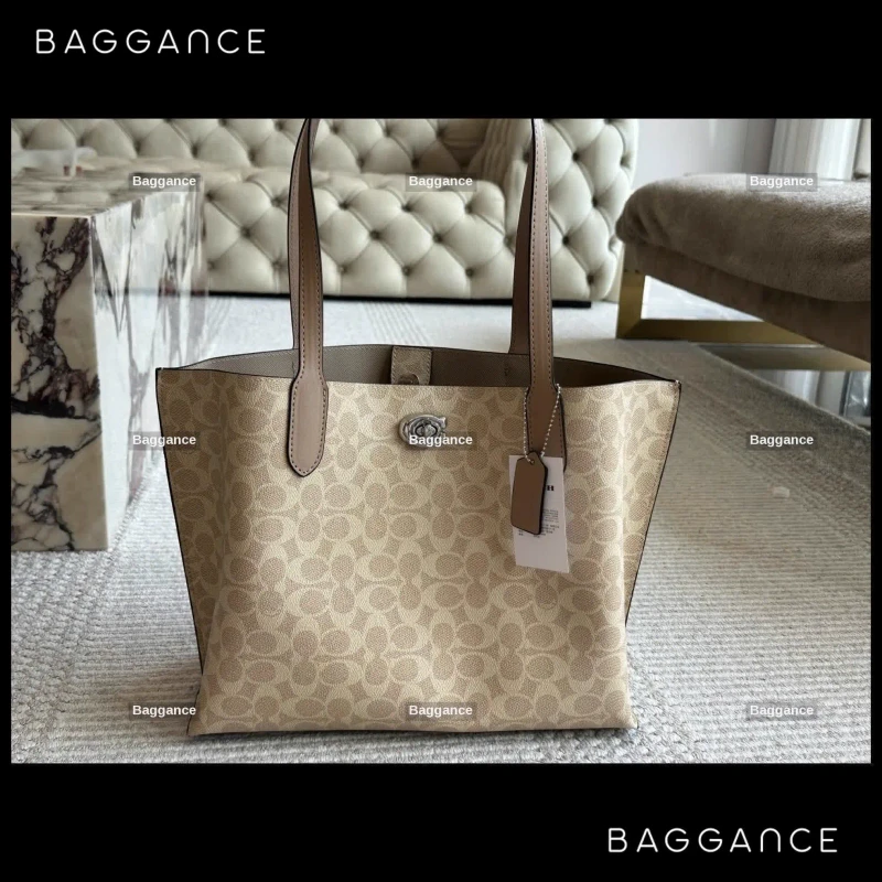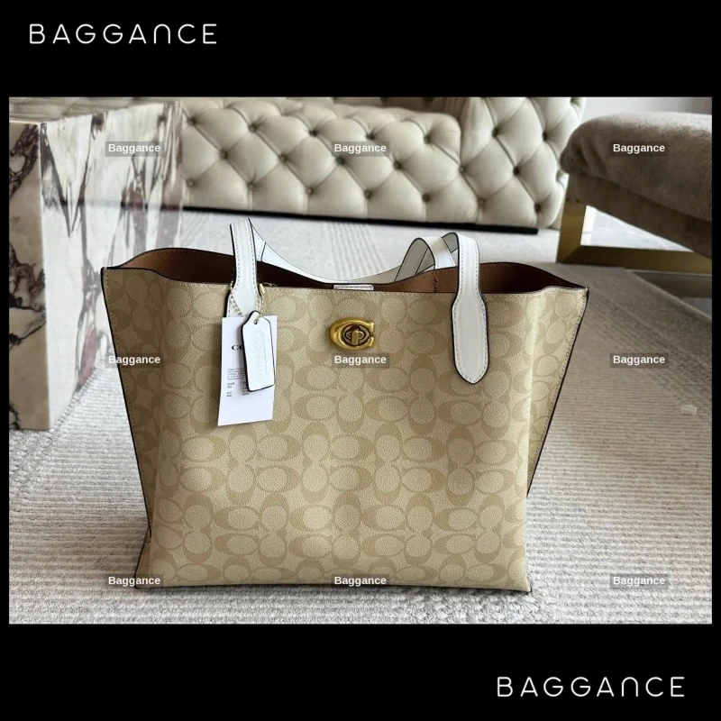 The exterior of the bag showcases the classic Coach signature monogram, a pattern that has become a global symbol of approachable luxury. This timeless print is versatile enough to complement both formal office wear and relaxed weekend attire. The neutral color palette ensures that it remains a staple accessory across all four seasons.