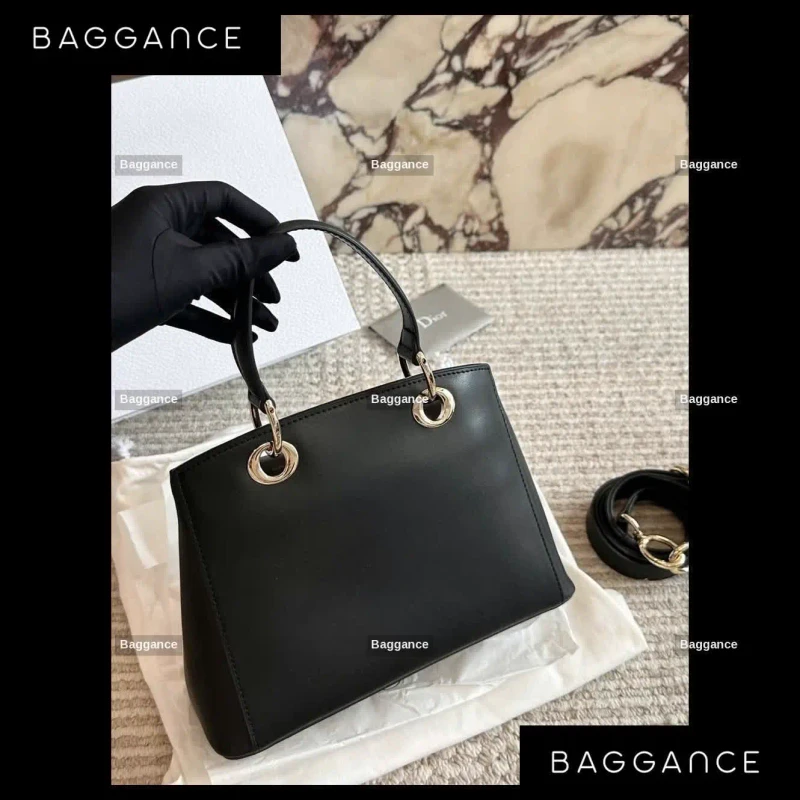 - Branded Top Handle: Features elegant metal "Dior" lettering.