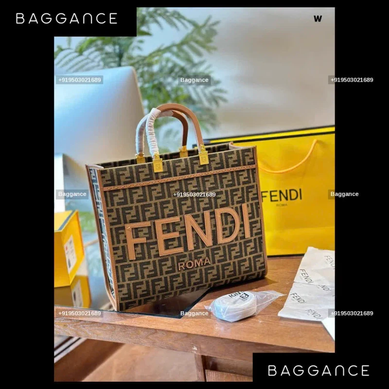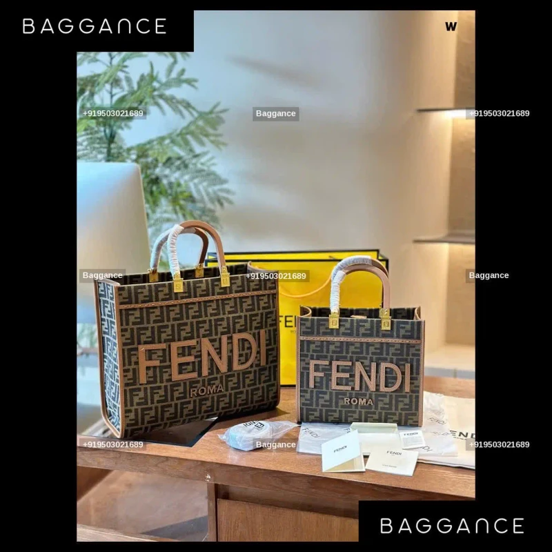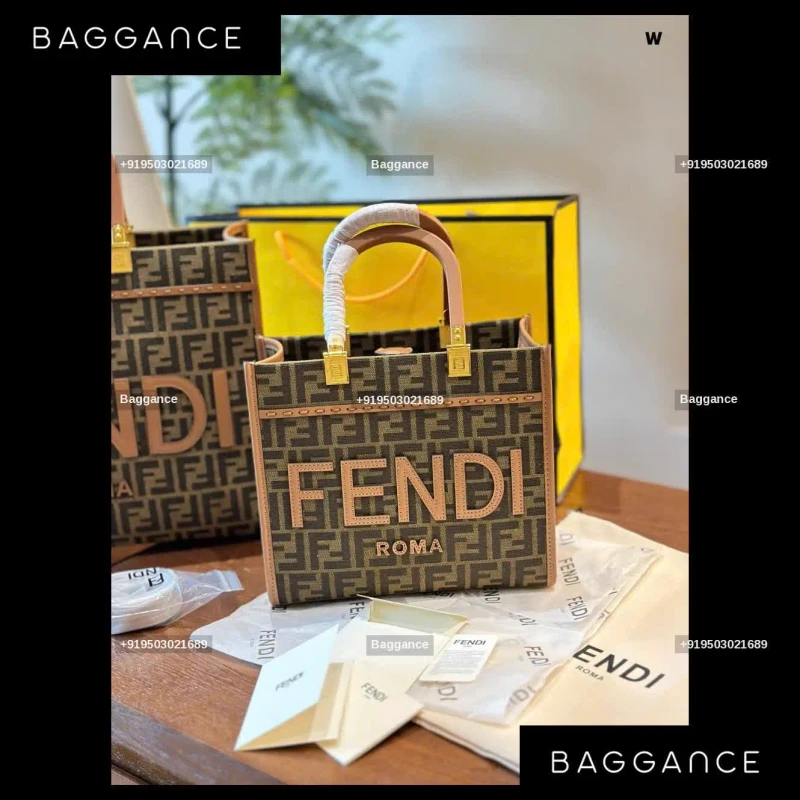 Command attention with the Fendi Sunshine Tote, a bag designed for those who lead with grace and style. This majestic tote features a structured, architectural silhouette that exudes power and sophistication. Embossed with the iconic "FENDI ROMA" signature, it serves as a bold proclamation of heritage and luxury, making it an essential companion for the discerning elite.