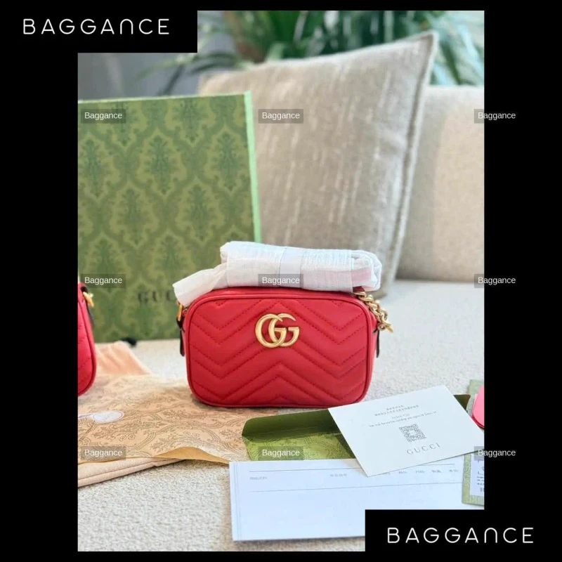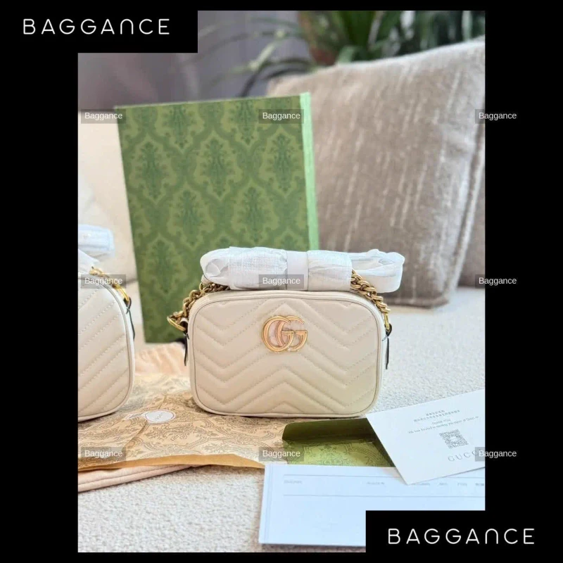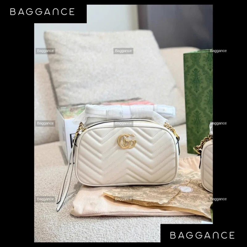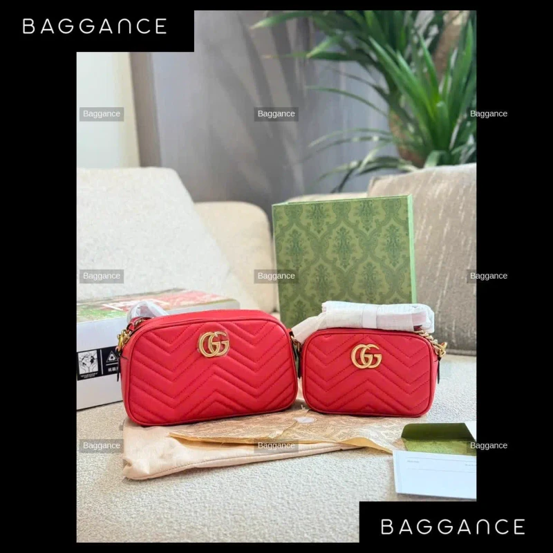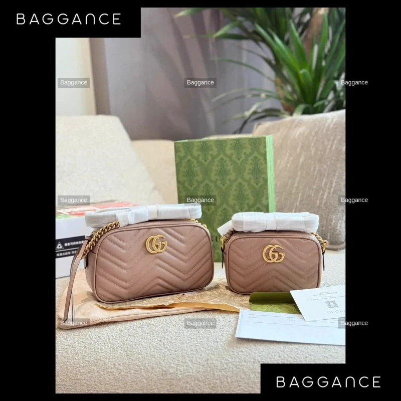 Available in two versatile sizes—19cm and 24cm—this camera bag is built for the dynamic needs of today’s woman. Its adjustable chain and leather shoulder strap allow for comfortable cross-body or over-the-shoulder wear. The zip-top closure provides secure access to a surprisingly roomy interior, capable of holding essentials such as a large smartphone, keys, cards, and daily cosmetics. From casual dạo phố trips to formal dinners, the Gucci Marmont is the ultimate companion.