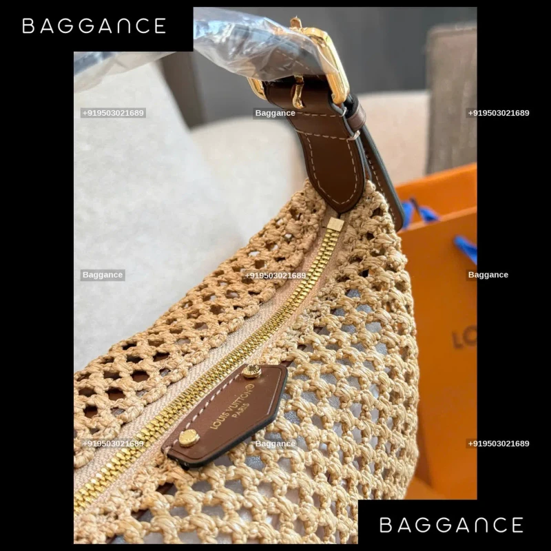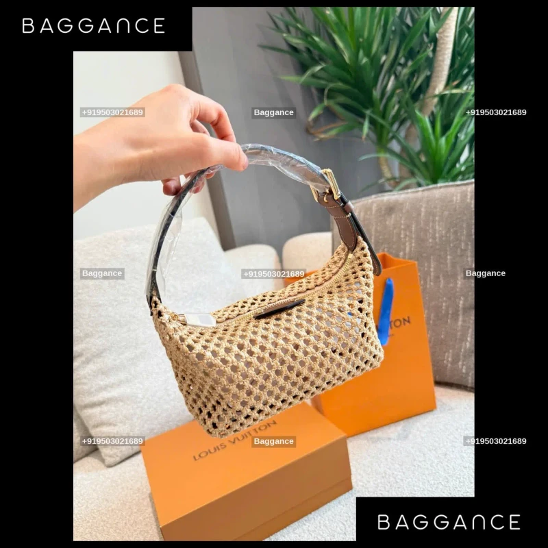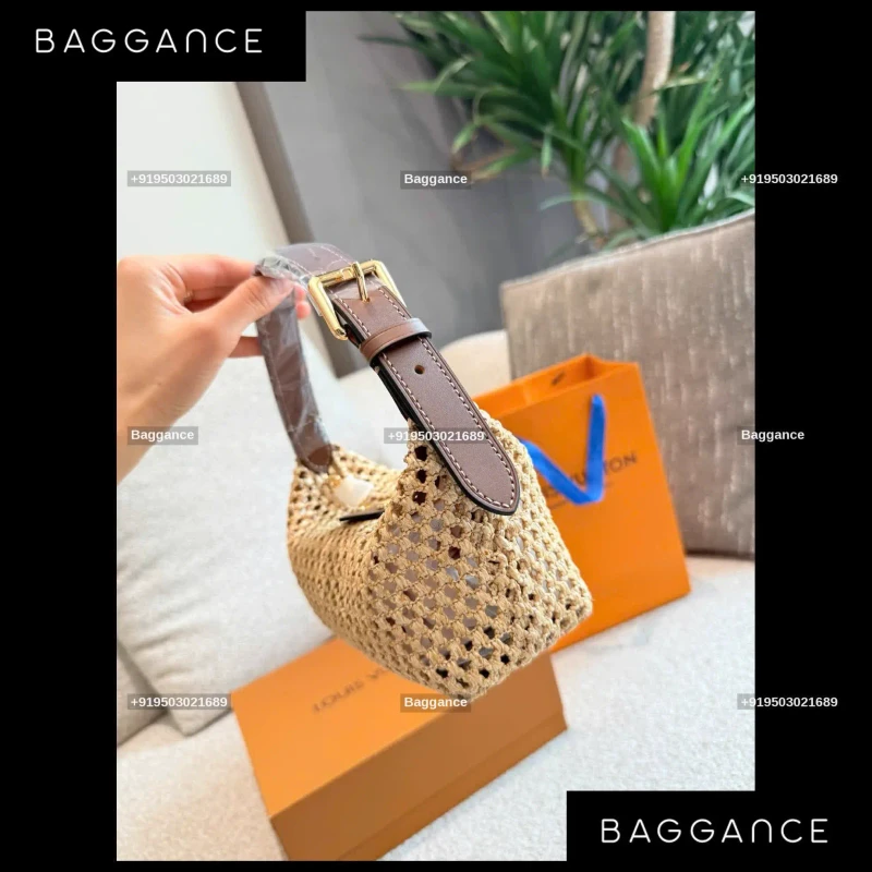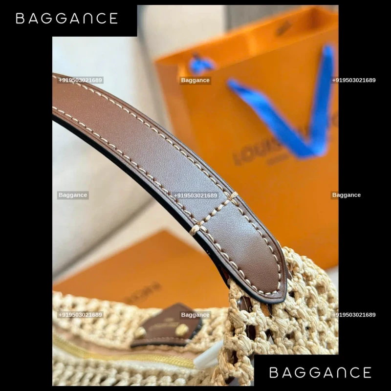 Every LV Raffia bag is uniquely crafted through traditional weaving techniques, ensuring that no two pieces are exactly alike. The cream-colored raffia material provides a natural, organic texture that is soft to the touch yet structured enough to maintain its elegant silhouette. This artisanal approach makes it a standout "non-standard" piece in any designer collection.