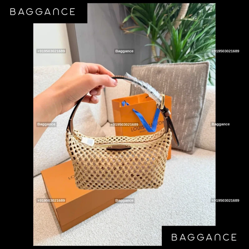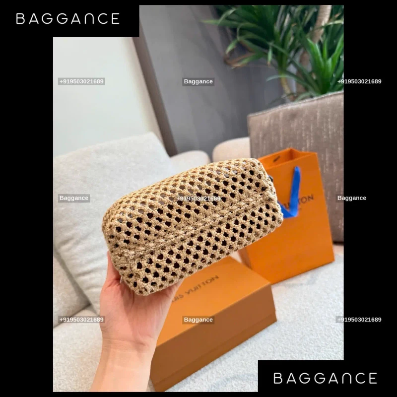 LV Raffia Handmade Woven Bag – Cream | Size 18cm | Full Box